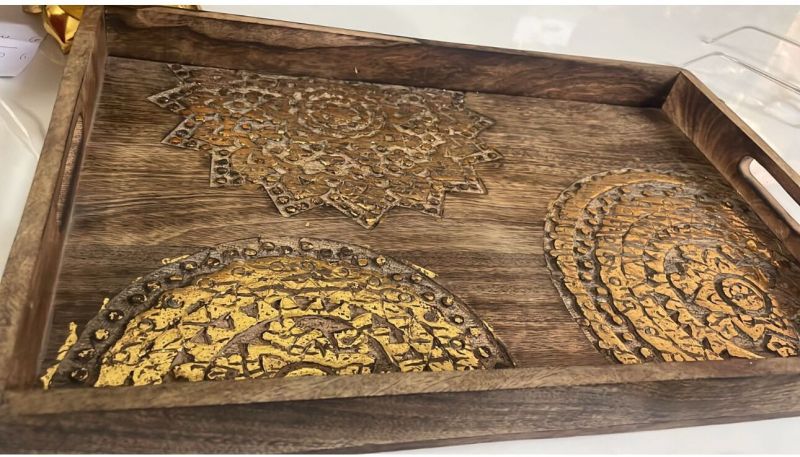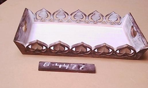 Mango wood trays sets of 2 with white finish design for home decoration, available in different designs and sizes.